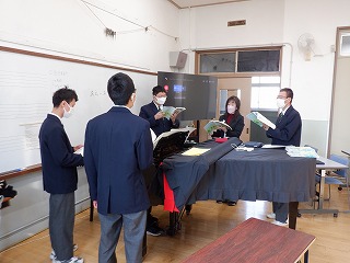 始めは男声女声に分かれて練習をしました。ソプラノの高音に苦戦していました。