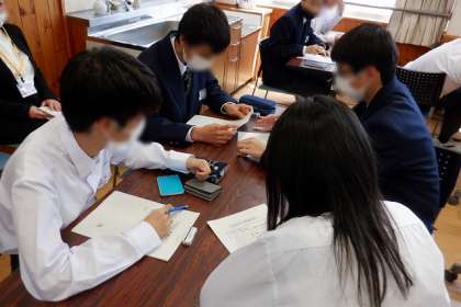 まず、“なぜ”ビジネスマナーが必要なのか、“何のために”ビジネスマナーを身につけるのかを生徒同士で意見交換しながら考えました。