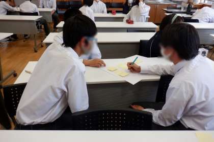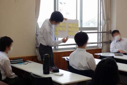 生徒会とクラス委員が集まり、「なぜ?」「何のために?」学校生活のきまりがあるのかを話し合いました。まずは、6グループに分かれて意見を出し合い、それぞれのグループの意見をまとめて発表することで、意見交換しました。なぜ学校のきまりがあるのかについては、「(きまりをもとに)自分を見直す力をつけるため」「(きまりを守れる人になることで)社会人になるための準備をするため」などの意見が発表されました。また、何のために学校のきまりが必要なのかについては、「安全に楽しくすごせるため」「みんなが快適に過ごすため」「メリハリをつけるため」「それぞれの意見や価値観が違うので、基準をつくるため」などの意見が発表されました。意見をクラスに持ち帰り、クラスでも学校生活のきまりについて考えていきます。そして、必要性や意義についての考えを深めることで、より充実した内容のきまりの作成に繋げていきたいと思います。