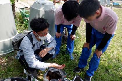 また、コンポストに入れるための、ミミズがたくさん入った土を会員の方から提供していただき、ミミズがどんな働きをしてくれるのかを教えていただきました。