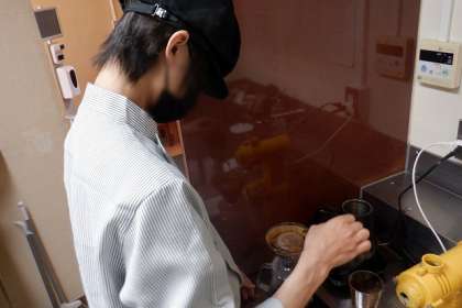 食品加工では、日ごろの取組を代表生徒が説明し、自慢のドリップコーヒーを楽しんでいただきました。