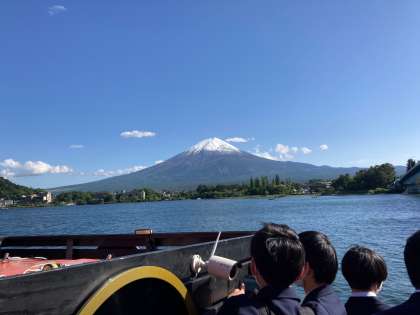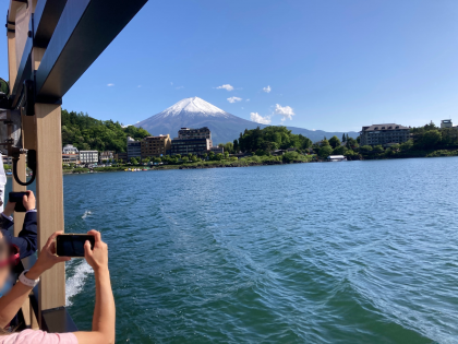 遊覧船から見える富士山が綺麗で、みんな写真を撮らずにはいられない様子でした。景色だけではなく風も気持ちよく、最高の遊覧でした。