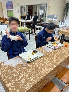 みんなよく眠れたようで、朝食もたくさんいただいています。