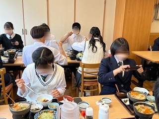 お昼ご飯です。名物のほうとう鍋がついていました。運動した後で、食が進みます。