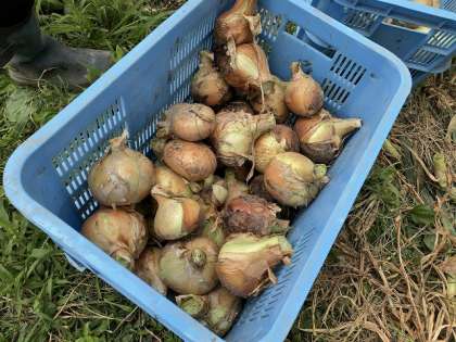 玉ねぎも大きく成長し、どんどん収穫しています!