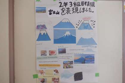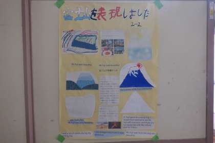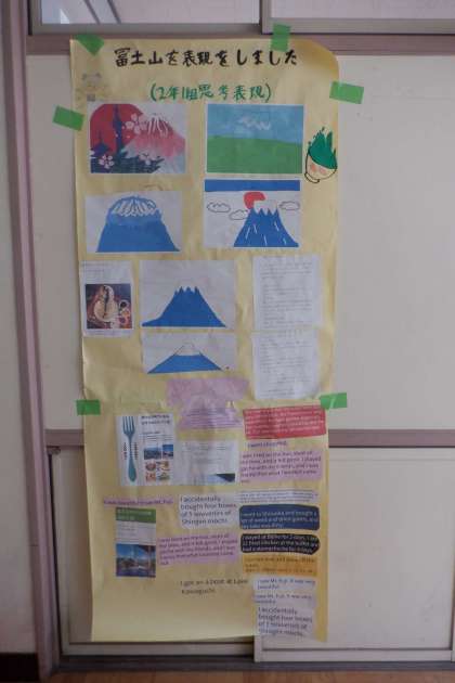 2年思考表現の学習で、研修旅行で見た富士山を絵や文章で表現しました。