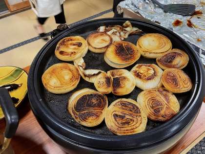 先日『くろ谷子ども食堂』に提供した新玉ねぎですが,美味しそうなステーキに変身しました!