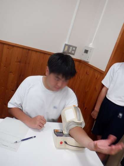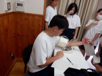 血圧を測った経験がない生徒もおり、興味深々で計測していました。