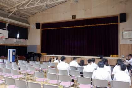 本日5・6時間目に学習成果報告会ステージ発表のリハーサルを行いました。今日まで練習してきたことを緊張しながらも発表する姿が見られました。また、生徒同士で動きやセリフを確認しながら、切磋琢磨している姿も見られました。