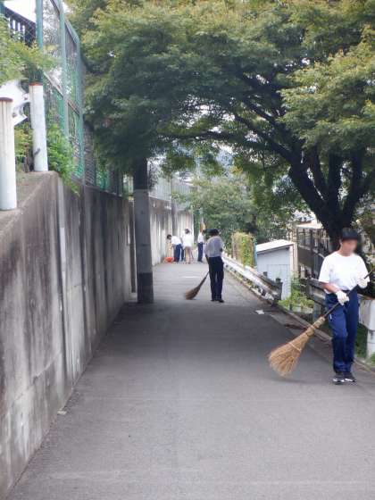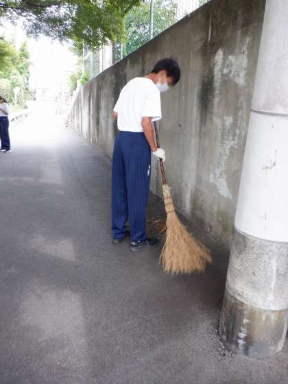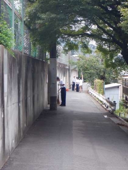 今日は、清掃演習で学校の前の道を清掃しました。長い道だったので、グループのメンバーで相談し、担当場所を決めてから清掃を始めました。