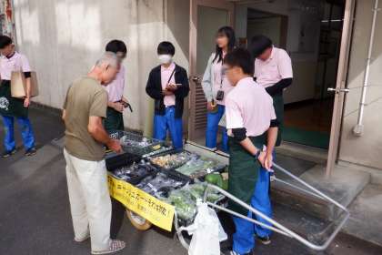 気持ちのいい秋晴れの中、引き売り販売を行いました。
