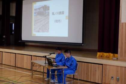 今回も1年生が説明や案内を担いました。初めて役割を担う生徒も多く、たくさんの人前で話すことに、とても緊張していましたが、最後までやり遂げることができました。
