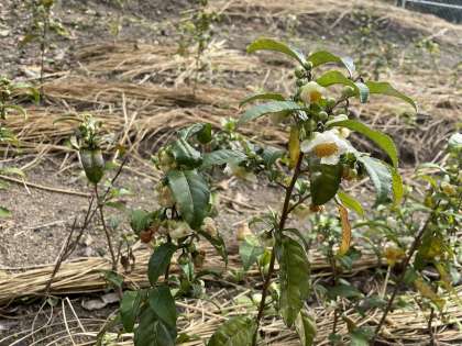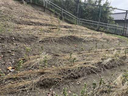 大変厳しかった夏を何とか乗り越え、昨年度、植樹した茶の木が花を咲かせました。今年は、大変暑かったので枯れてしまわないか、とても心配でしたが、かわいいきれいな花を咲かせている姿を見て、とてもホッとしました。また、寒さ厳しい冬がやってきますが、元気に育ってほしいと思います。