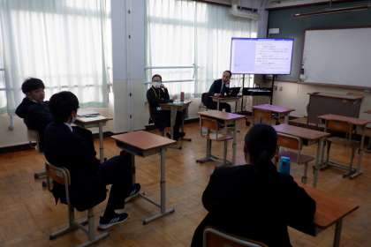 今日は、放課後の時間を『研究日』とし、各学年ごとに授業づくりについて話し合う時間を持ちました。月に1回程度『研究日』を設定して、そこで話し合ったことを実践し、また、次の研究日に成果と課題を挙げ、次の実践に向けた話し合いをすることを繰り返しながら授業づくりを進めています。十人寄れば文殊の知恵というように、、多角的・多面的な視野で、生徒たちがそれぞれの目標に向かって力をつけるためのより良い授業づくりの意見交換が活発に行われました。