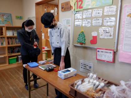 今日は、錦林児童館でパン販売を行いました。今回も1年生が担当しましたが、2人とも2回目ということで、2人で役割分担をしながら、準備を進めていました。緊張しながらも一生懸命、パンを販売をする姿が印象的でした。