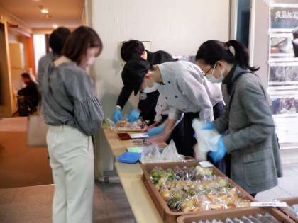 2月20日(火)に総合教育センターでパン販売を行いました。食品加工全員で力を合わせて準備し、焼き菓子やパンをたくさん用意し、当日は、2年生4名が現場に行って販売をしました。大変たくさんのお客様に来ていただき、30分ほどで完売しました。また、KBS京都の取材もあり、夕方放送の『きょうとDays』で取組が紹介されました。