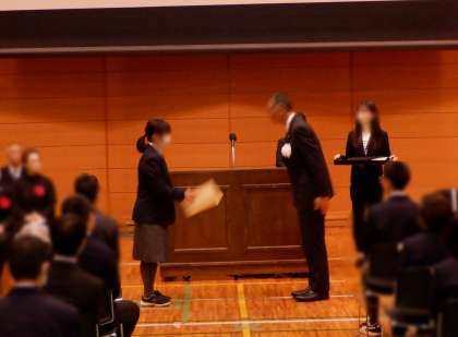 検定試験や競技大会での結果等、生徒たちのこれまでの頑張りを称えていただきました。表彰を受けたことを自信にかえて、新たな目標に立ち向かってほしいと思います。おめでとうございました!