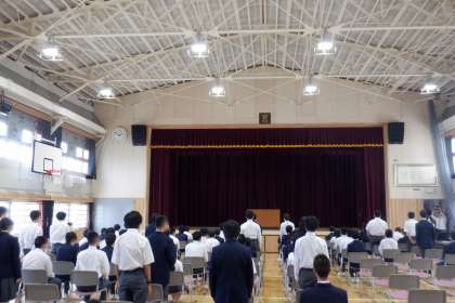 5月16日(木)6時間目に『前期認証式』を行いました。クラス委員会、保健・人権委員会、環境・安全委員会、広報・図書委員会のそれぞれメンバーが委員長より呼名によって、認証されました。その後、校長先生より、各委員会の代表生徒が認証状を受け取りました。そして、教室に戻ったあと、一人一人担任より自分の認証状を受け取りました。