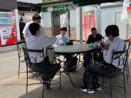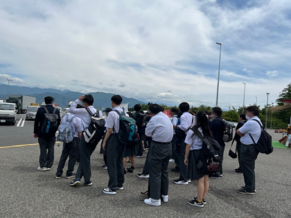 雲もありますが、青空も広がっています。遠くには雪の残る山が見れてきました。駒ケ岳サービスエリアで、昼食をとります。