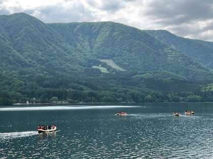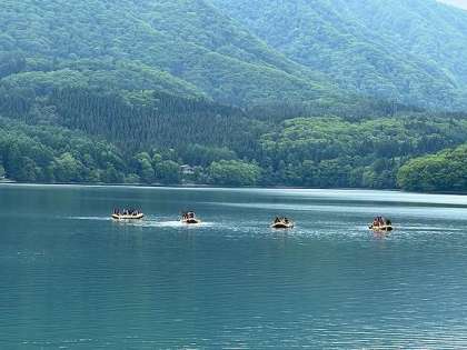 4隻に分かれて活動しています。どの船からも元気な掛け声が湖上に響き渡っています。息も合って、なかなかのスピードです。