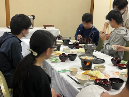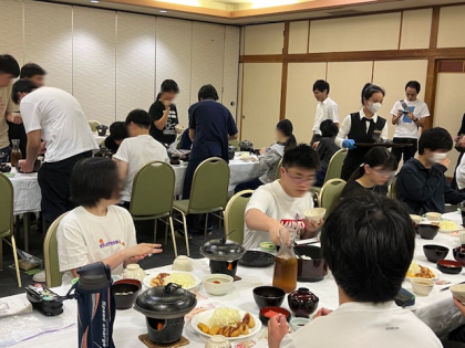 運動をしてお腹も減っています。心尽くしのメニューをみんなで美味しくいただきました。