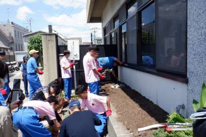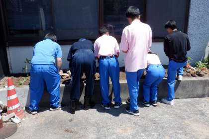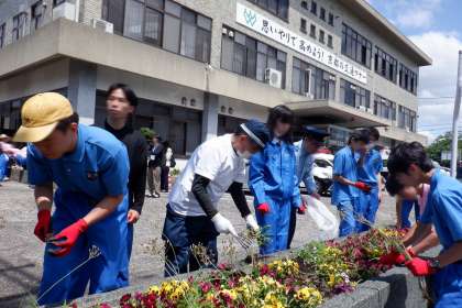 花壇の整備をして、ひまわりの苗を植え替えました。元気に大きく成長して、夏に立派な花を咲かせることができるように、思いを込めて作業しました。