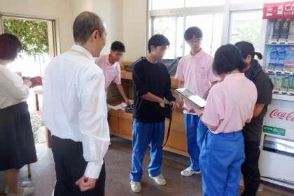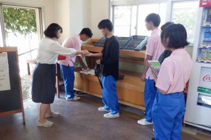 今日は、避難訓練があり、地域への引き売り販売を行うことができなかったため、校内販売を行いました。金曜日は、1年生が流通・サービスの学習で販売を行っています。レジのタブレットを操作したり、商品を渡したり、スタンプカードの紹介をしたりと、役割を分担しながら、販売活動を行うことができました。これから、夏に向けて、様々な野菜の収穫が予定されています。火曜日は3年生、水曜日は2年生、金曜日は1年生が、野菜の引き売り販売を行いますので、どうぞよろしくお願いいたします。