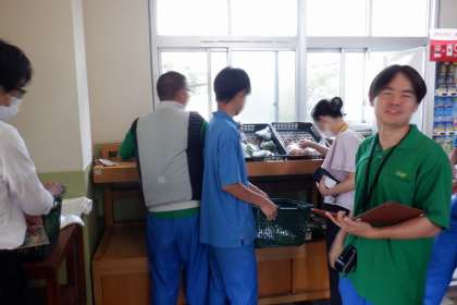 7月18日(木)11:00〜北校舎1階のスペースで、野菜の校内販売を行いました。昨日の予告を見て来校してくださった方や、体操教室のために来校された方など、多くの方々に野菜をご購入いただきました。ありがとうございました。