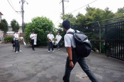 昨日から、あいさつ運動を行っています。生徒会本部役員やクラス委員がたすきを付けて校門前で生徒の登校を出迎えています。大きな声で「おはようございます!」とあいさつを交わすと、自然と笑顔になっています。
