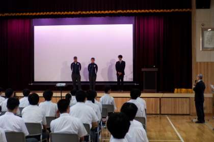 始業式の後に、全校集会を行い、10月に行われる『第23回全国障碍者スポーツ大会 佐賀大会』、11月に行われる『全国アビリンピック大会(愛知県にて開催)』の壮行会を行いました。出場する選手から「今持っている自分の力をすべて発揮してきたいと思います」「ルールを守り安全に気を付けていってきます」「自分より経験豊富な方もたくさん出場されると思いますが自分の強みを発揮して頑張りたいです」などの意気込みが話されました。会場全員からは、激励の大きな拍手が送られました。大きな舞台で緊張もすることと思いますが、それぞれの選手がその舞台に立っている自分に誇りと自信持って、堂々と自分の力を発揮することができるよう、応援しています。