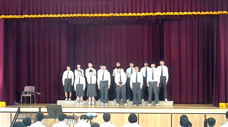 2年生『選択音楽』の生徒による合唱です。楽器演奏をしながらの合奏もありました。素敵な歌声が体育館に響き渡りました。