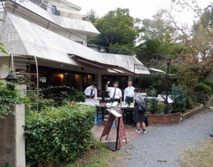 銀閣寺と南禅寺を結ぶ哲学の道にある緑に囲まれた川沿いのカフェ『GREEN TERRACE』にて野菜販売をさせていただきました。店舗の店先での野菜販売は、はじめての活動です。制服を着て接客しながら野菜を販売する機会貴重な機会となりました。海外からの観光客の方も多く、英語でのやり取りも楽しくいい経験となりました。