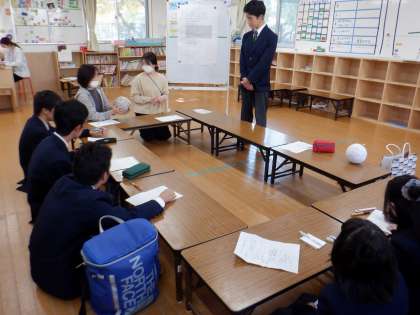 12月に錦林児童館で行われる冬のお楽しみ会で乳幼児が楽しめる企画をメンバー10人で意見を出し合い、考えました。この日は児童館へお邪魔して、作成中のグッズを見せながら、企画の内容を職員の方に説明しました。自分たちの考えたことを一生懸命伝えていました。アドバイスもいただき、さらにより良くなるようグッズの完成を目指します。また、当日の手遊びの練習もしました♪子どもたちが笑顔になるように、頑張っています。