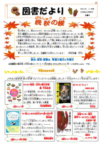 図書だより11月号👈👈👈こちらをクリックするとPDFデータが開き、ご覧になれます。
