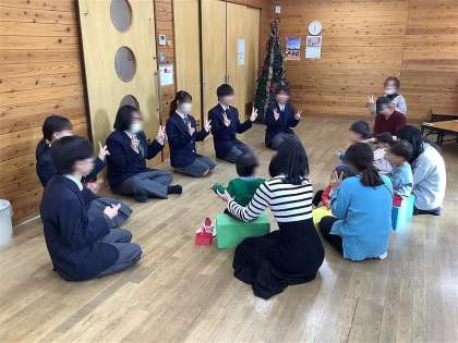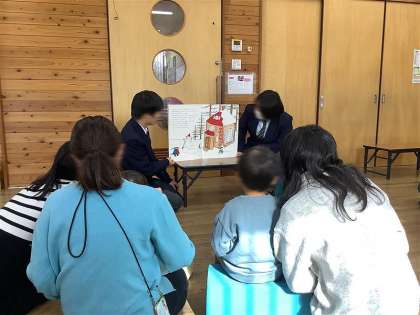 12月9日(月)に錦林児童館との協働活動でワークショップを開催しました。生徒が企画を考え、計画的に準備物などを作成し、錦林児童館の職員さんと打ち合わせを重ねて、今回の企画が出来上がりました。当日は、乳幼児の皆さんに喜んでもらえるかどうか、ハラハラドキドキでした。