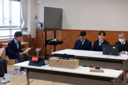 12月24日(火)1時間目に全校集会を行いました。今回は、オンライン配信におる全校集会とし、各教室で配信を視聴しました。後期始業式に引き続き、『夢七訓』の話から、夢を叶えるために必要なことについての話がありました。また、冬季休業中に気を付けてほしい交通安全や、SNSに関することなどの話がありました。最後は、全国大会に出場した生徒3名からの報告会がありました。映像などを交えて、競技の結果や感想などの報告がありました。それぞれ、大きな舞台を経験したことで学んだことが多くあったようです。
