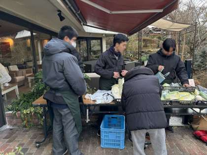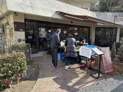2月4日(火)13時ごろより、哲学の道沿いの『GREEN TERRACE』にて、野菜販売をさせていくただきました。今日の販売に向けて、先週、チラシを配って宣伝活動を行った甲斐もあり、前回よりも、たくさんの方にご購入いただくことができました。