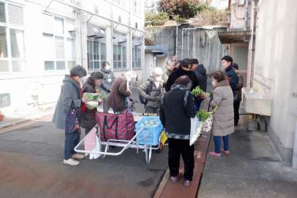 2月18日(火)5・6時間目は、3年生『流通・サービス』の時間で、3年生にとっては、卒業前最後の『流通・サービス』の授業となりました。毎週、地域に野菜を販売に行っていた引き売り販売も3年生は今日が最後でした。雪が舞う中でしたが、新鮮な野菜を地域の方々に届けることができました。3年間の思い出が蘇る引き売り販売でした。