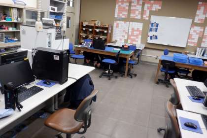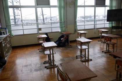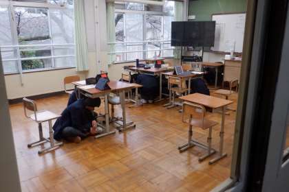 3月11日(火)1時間目にシェイクアウト訓練を実施しました。シェイクアウト訓練は、地震の際の安全確保行動『まず低く、頭を守り、動かない』を身につける訓練です。教室での授業、専門科での授業、実習の事前学習など、様々な場所で学習中でしたが、いつ起こるかわからない地震へ備えて、1分間安全確保行動を取る訓練を行いました。