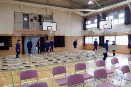 3月17日(月)1時間目から3時間目にかけて、1年生が午後に行われる『入学説明会』の準備をしました。昨年のことを思い出しながら、みんなで力を合わせて準備しました。「新入生、もう来てますか?」と尋ねる生徒もあり、午後からの開催であることを伝えると、残念そうな様子が見られ、新入生の入学が待ち遠しい先輩の姿がありました。