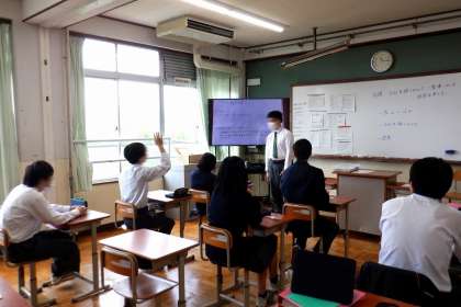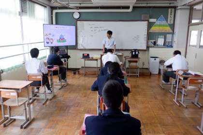 3年生の水曜日午前中の時間割は、生活教育境域の各教科の学習です。3年生は、ラスト1年ということで、各クラスごとだけではなく、たくさんの人とコミュニケーションを取りながら学べるように学習グループでの学習を進めています。3年生の教室を覗くと、社会生活『18歳(成人)になるとできること』、思考表現『ALTの先生へインタビュー』、家庭生活『ゴールデンウィーク(休日)の過ごし方』などを題材に学習に取り組んでいました。