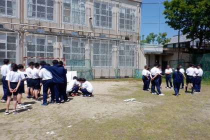 作戦会議のあとは、実践練習です。太陽の日差しが厳しいので、休憩と水分をしっかり取りながら取り組みました。