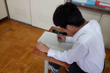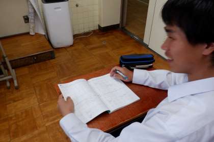 求職申込書が完成した生徒は、『就労のための基礎づくり(就労のために身につけたい項目)』のチェックシートを使って、今の自分自身について考えていました。また、3年生は、スケジュールを管理する力を身につけるため、ひとり一人自分のスケジュール帳を持ち、活用していけるよう取り組んでいます。まずは、今わかっている学校行事などを手帳に書きこんでいました。
