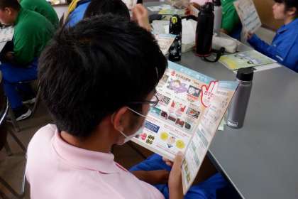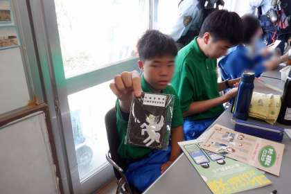 今年度も川端警察署の『ひまわりの絆PJ』に賛同し、ともに活動させていただきます。今日は、昨年度、収穫できたひまわりの種植えをしました。はじめに、川端警察署の皆さんから、自転車の乗り方や闇バイト、薬物などのことについてお話をいただきました。また、パンフレットや発光版などをいただきました。