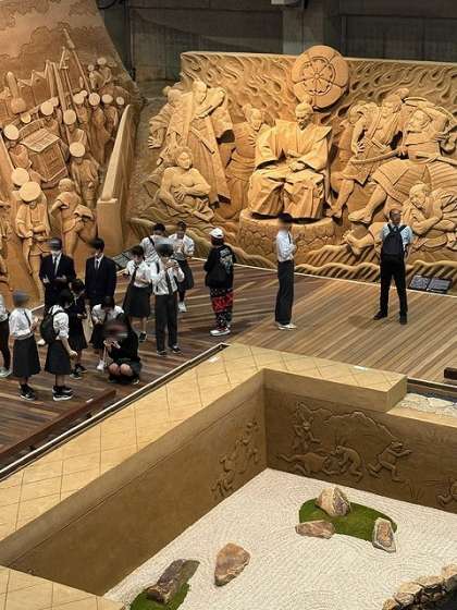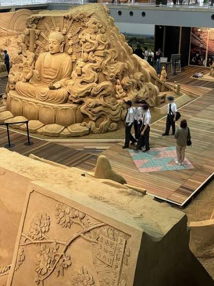 本物の鳥取砂丘の偉大さを感じた後は、『砂の美術館』へ。砂で作られている芸術作品に感動の嵐です。