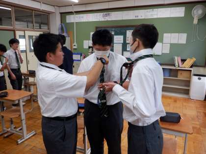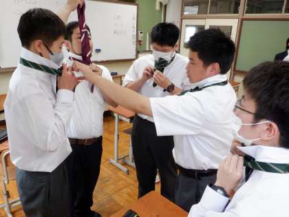 何度も何度もネクタイを結びました。うまくいかない時は、友達のアドバイスを聞きながら取り組みました。かっこよく結べた時には、鏡を見て素敵な表情を浮かべていました。