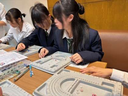 2日目は、まず、『勾玉ストラップ作り』に挑戦しました。たくさんの勾玉の種類がある中から自分で選んで作りました。また、ストラップの形も悩みながら自分で考えて作りました。