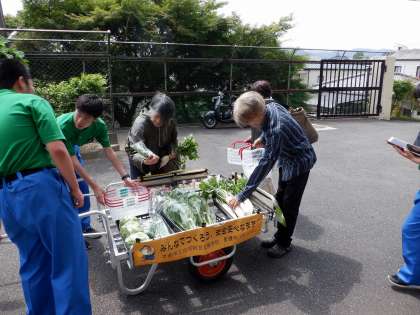金曜日の午後は、1年生が野菜の引き売り販売を行います。1年生も少しずつ販売に慣れ、役割を分担しながら接客を行っていました。緊張しながらも一生懸命な姿が印象的でした。