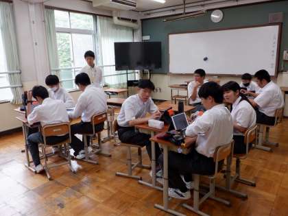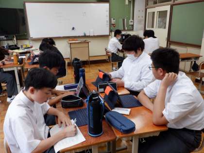 木曜日5時間目は『総合的な探究の時間』です。1年生の教室を覗いてみると、グループワークで”1泊2日の旅行”を考えていました。グループみんなの希望を叶えられるように、行先を考え、目的地までの交通機関を調べ、スケジュールを立てていました。また、泊まるホテルや旅館も調べ、夜ご飯は何を食べるかなど、細かいスケジューリングをしてました。今回は、予算制限なしということで、夢の旅行プランを立てて笑顔が溢れていました。