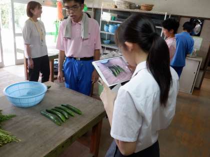 農園芸からの依頼を受け、野菜販売のチラシを作成していました。錦林児童館での販売に向けての広告のチラシを作成するため、実際に農園芸に取材にいき、野菜の写真を撮影しました。